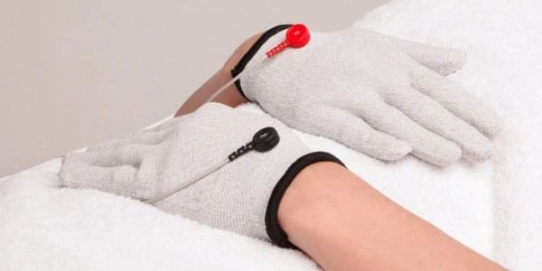 Advanced conditioning treatment using silver fibre microcurrent gloves with CACI's Rejuvenating Hand Mask to smooth fine lines and wrinkles.
